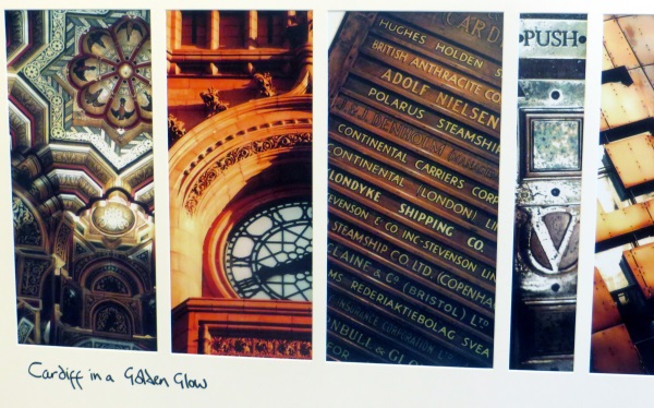 left to right: The Marchnad Caerdydd (Cardiff Market) clock; Cardiff City Hall reflected in a Rolls Royce which has delivered a bride to this iconic building; Cardiff Millenium Centre; a detail of art deco ironwork at the Welsh Government buildings; the war memorial in the park opposite the Uniersity of Cardiff; the beautiful art deco light fittings at Cardiff Train Station; inside one of Cardiff's classic arcades; the Coal Exchange; Cardiff Millenium Stadium.