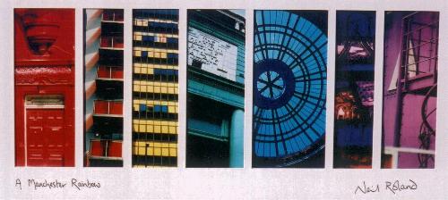 cloud stained glass to UMIST; Victoria bridge; St. Ann's church windows; tail