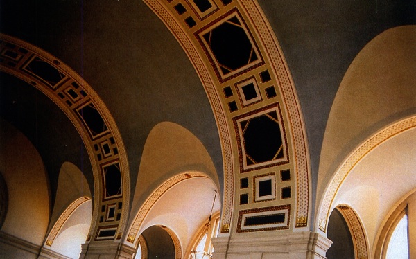 l-r: Civic Centre Building (1936); St. Michael's Church stained